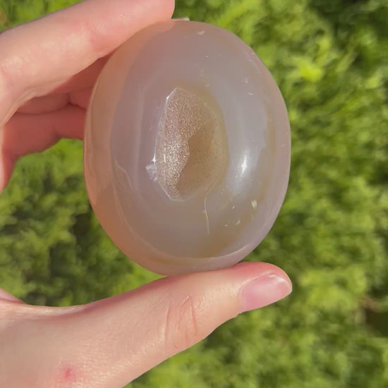 Perfect for crystal grids, bedside tables, or carrying with you throughout the day, this agate palm stone is both a beautiful natural treasure and a comforting tool for mindfulness and intention-setting.