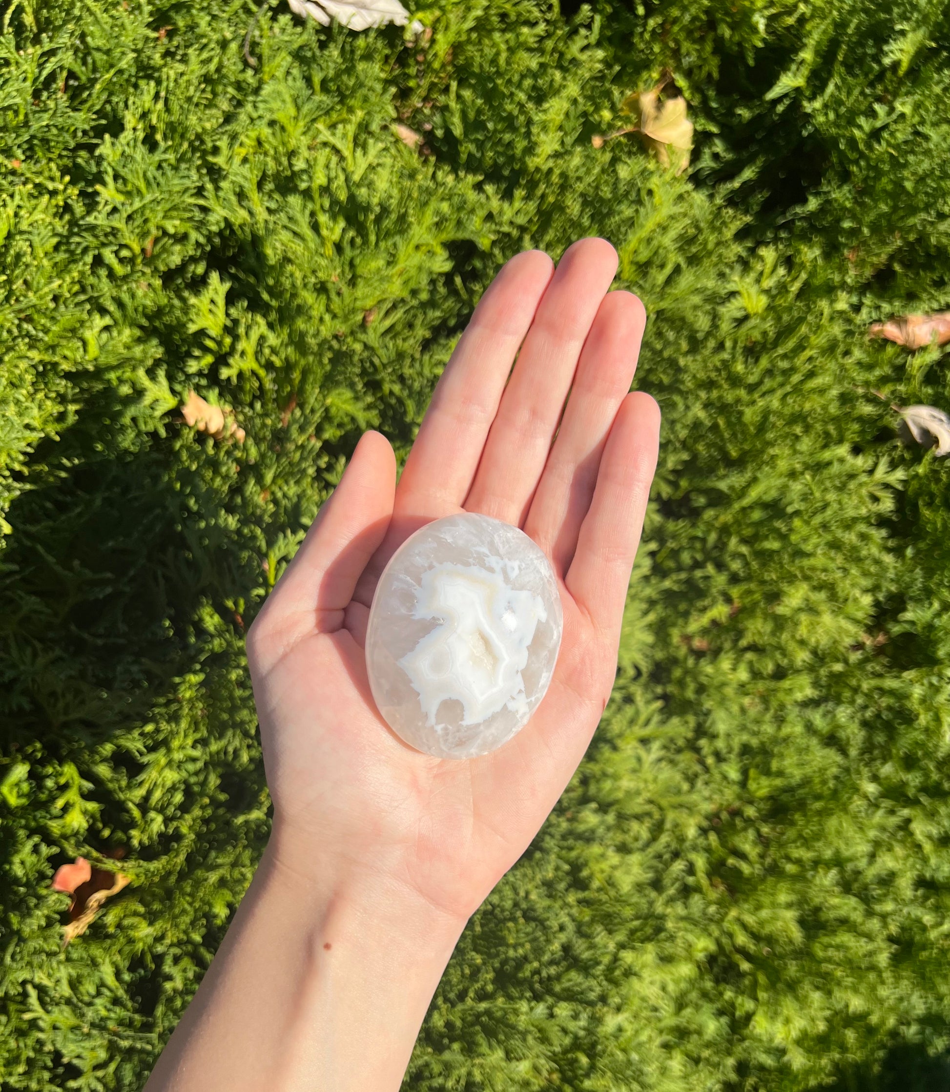 Perfect for crystal grids, bedside tables, or carrying with you throughout the day, this agate palm stone is both a beautiful natural treasure and a comforting tool for mindfulness and intention-setting.