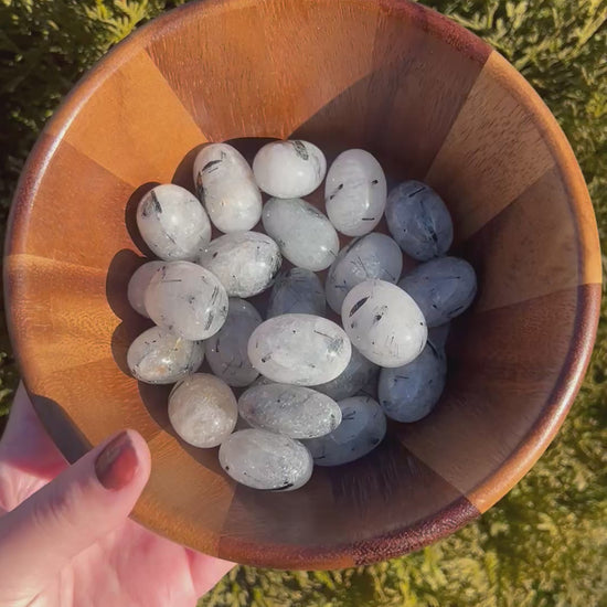 Often associated with clarity, grounding, and focused energy, Black Rutilated Quartz is appreciated for blending the amplifying qualities of quartz with the stabilizing presence of dark rutile. These smooth tumbled stones are ideal for carrying in your pocket, using during meditation, or adding visual interest to crystal grids and collections. Each piece is one of a kind, showcasing its own natural pattern and character.