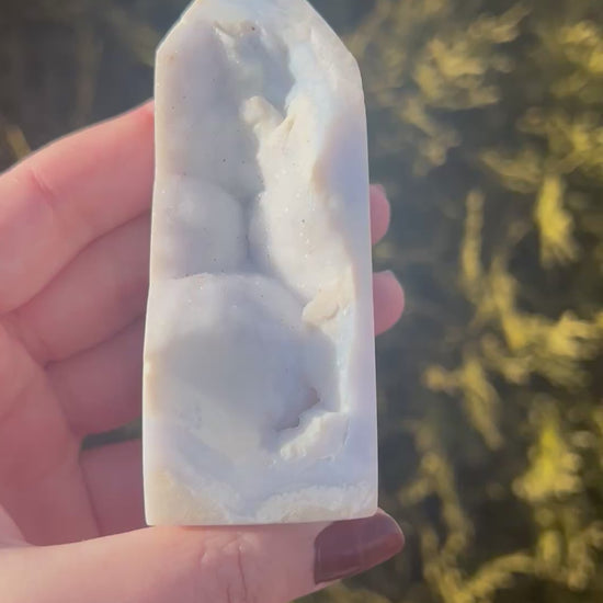 Perfect for meditation, intention setting, or adding a serene touch to your space, a blue lace agate tower brings a soft, calming energy that supports clarity, calm, and harmony in everyday life.