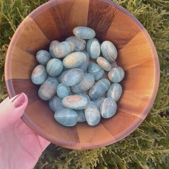 A versatile and gentle crystal, this blue onyx tumbled stone is ideal for pockets, crystal grids, or as a thoughtful gift for anyone seeking peace and grounding energy.