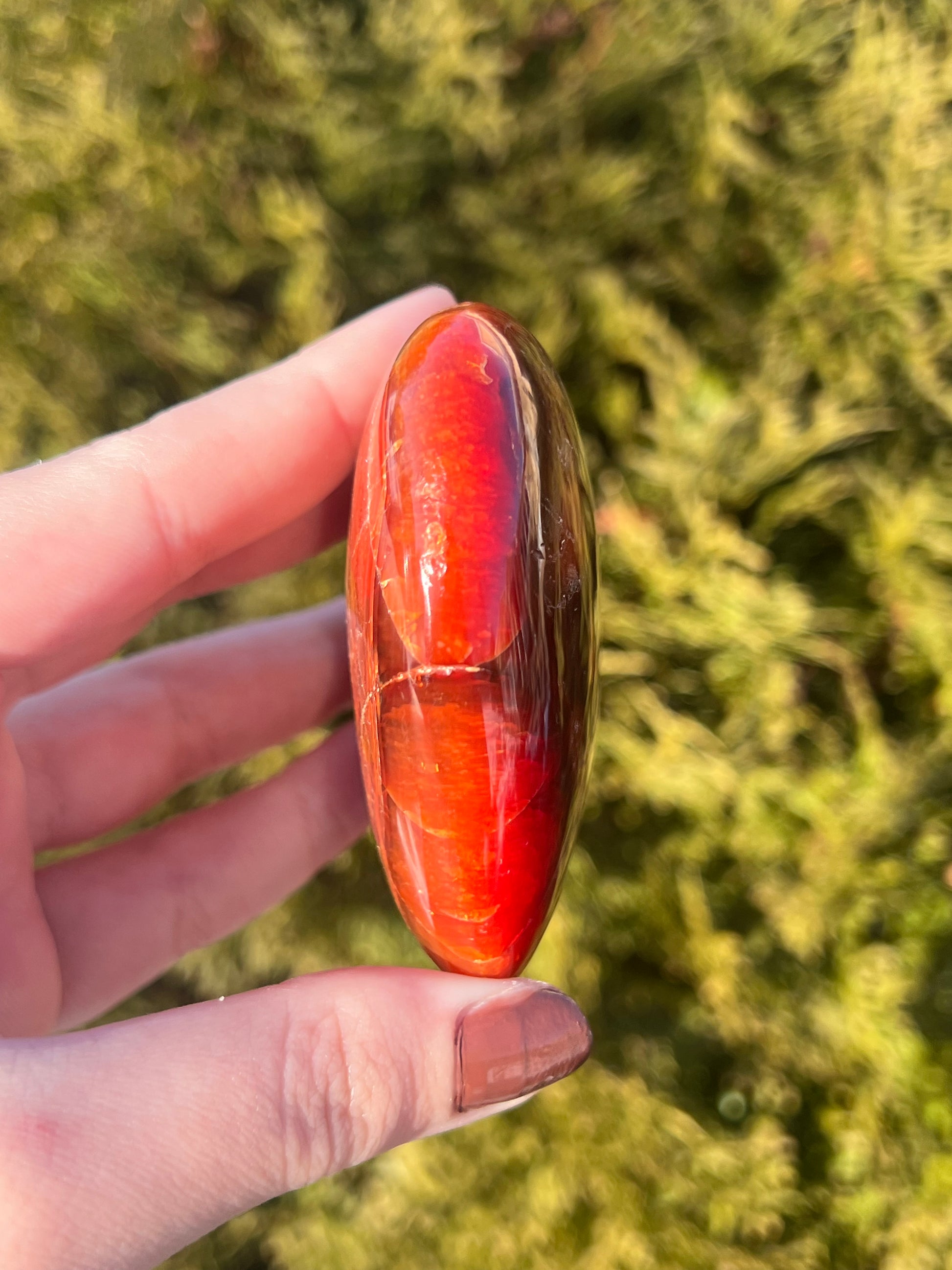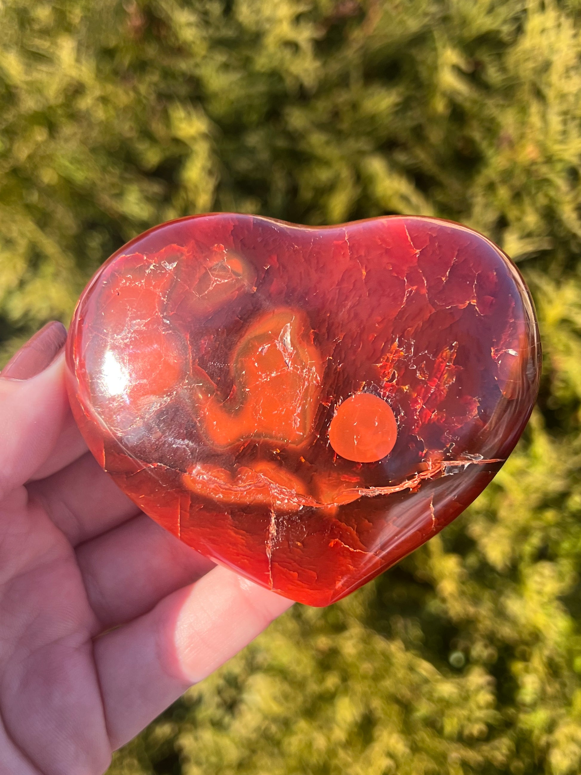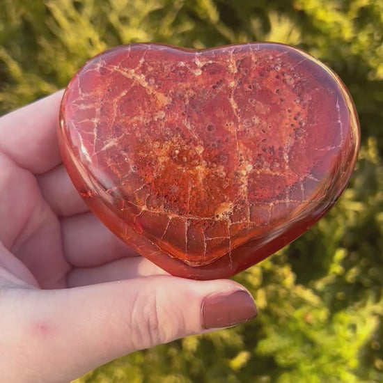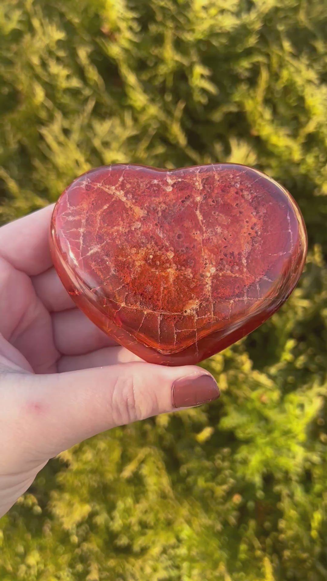 This polished carnelian heart radiates warm, fiery tones that symbolize passion, confidence, and vitality. Carnelian is known as a stone of motivation and courage, helping to boost creativity, self-confidence, and positive energy while encouraging action and determination.