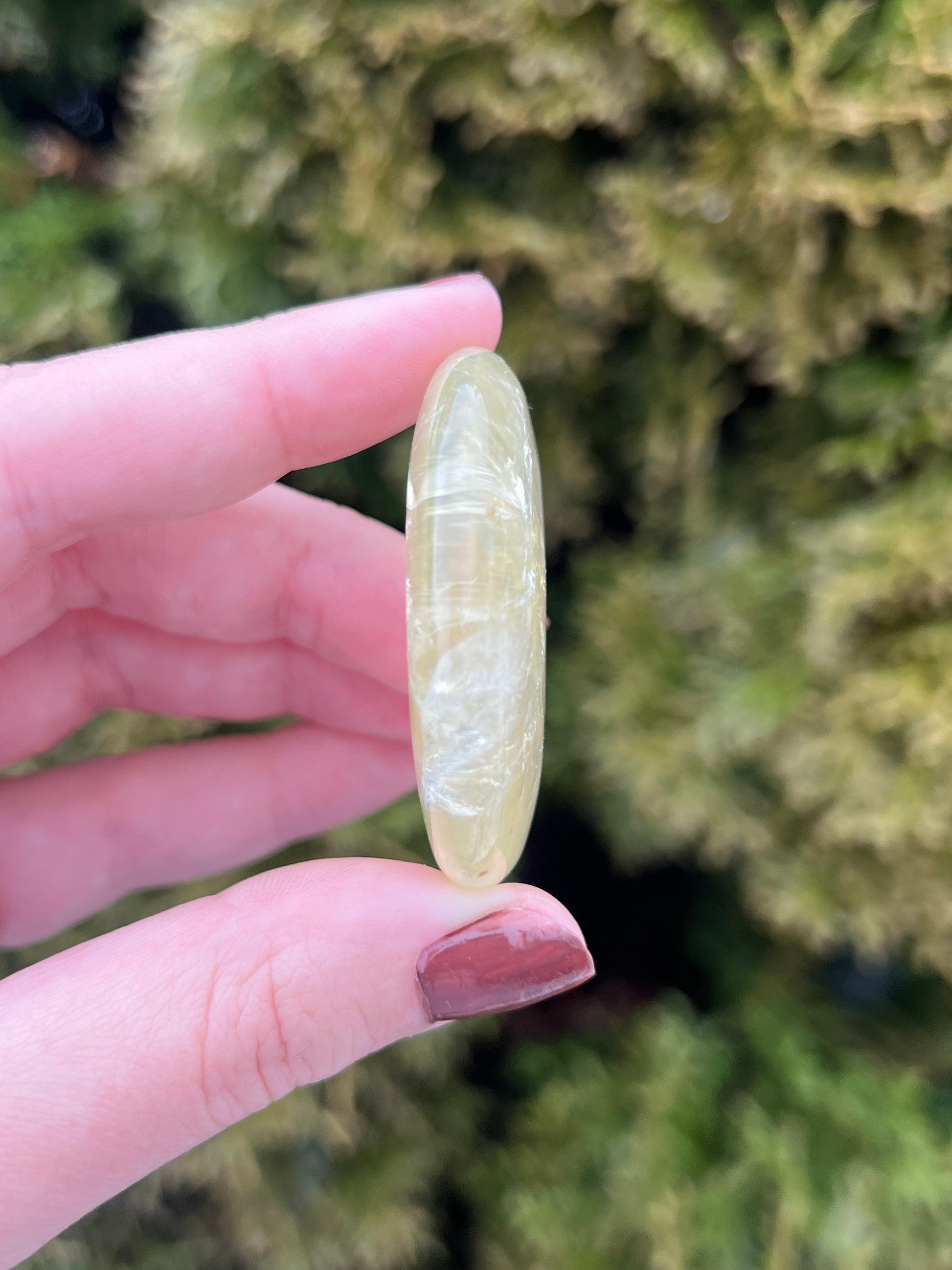 This citrine moon is a radiant and uplifting piece, carved into a graceful crescent shape that highlights citrine’s warm golden-yellow tones. With its smooth polish and natural color variations, each moon has a soft glow that brings warmth and charm to any space.
