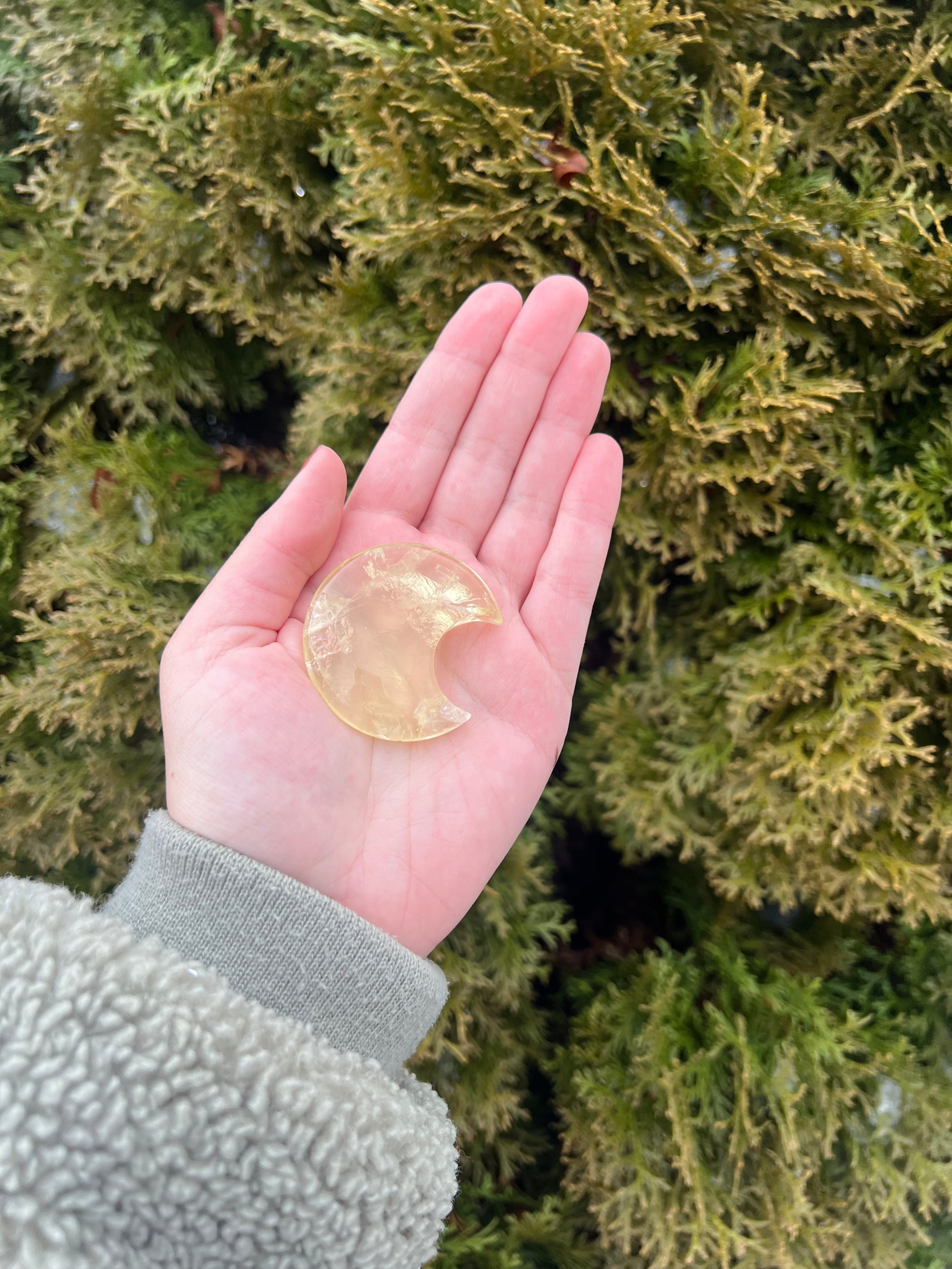 Whether displayed on an altar, shelf, or bedside table, this citrine moon adds a touch of magic, light, and joyful energy to your crystal collection.