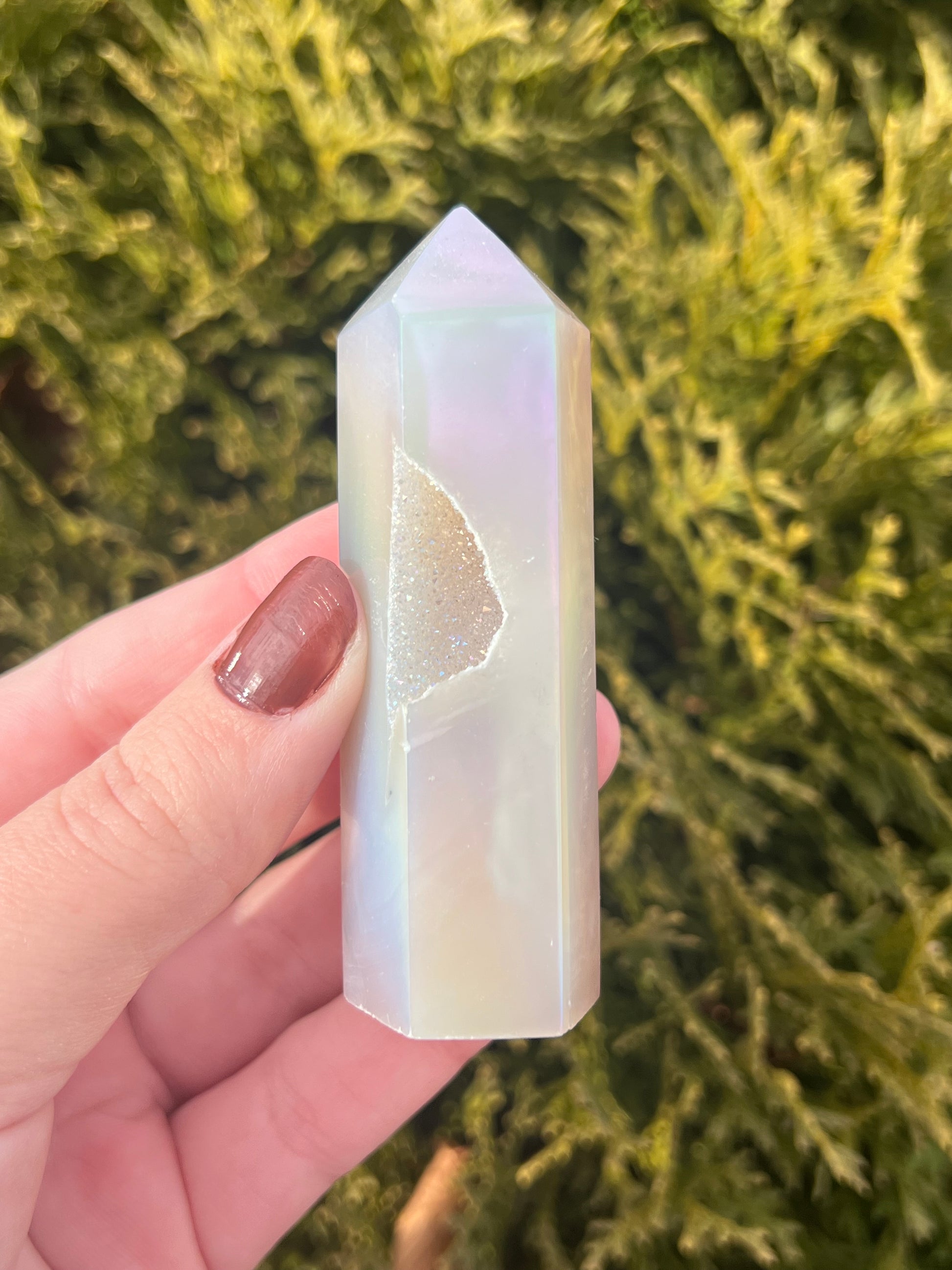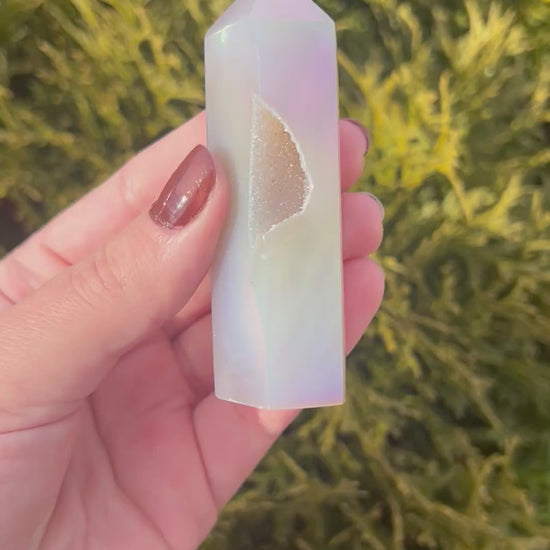 Druzy Agate Point with Aura Coating