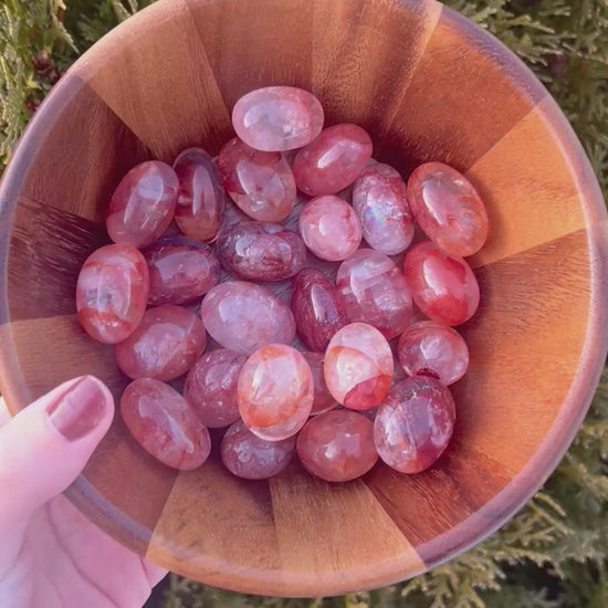 Fire Quartz tumbled stones, also known as Hematoid Quartz, blend clear quartz with natural iron inclusions that create warm red, orange, and golden flashes throughout each piece. These stones are known for their grounding yet energizing energy, helping to boost motivation, focus, and confidence while keeping emotions balanced. Smoothly tumbled and beautifully polished, each stone has unique fiery patterns, making every piece one of a kind. Fire Quartz is often associated with vitality, clarity, and inner strength—perfect for daily carry, meditation, or adding a bold, uplifting touch to your crystal collection.