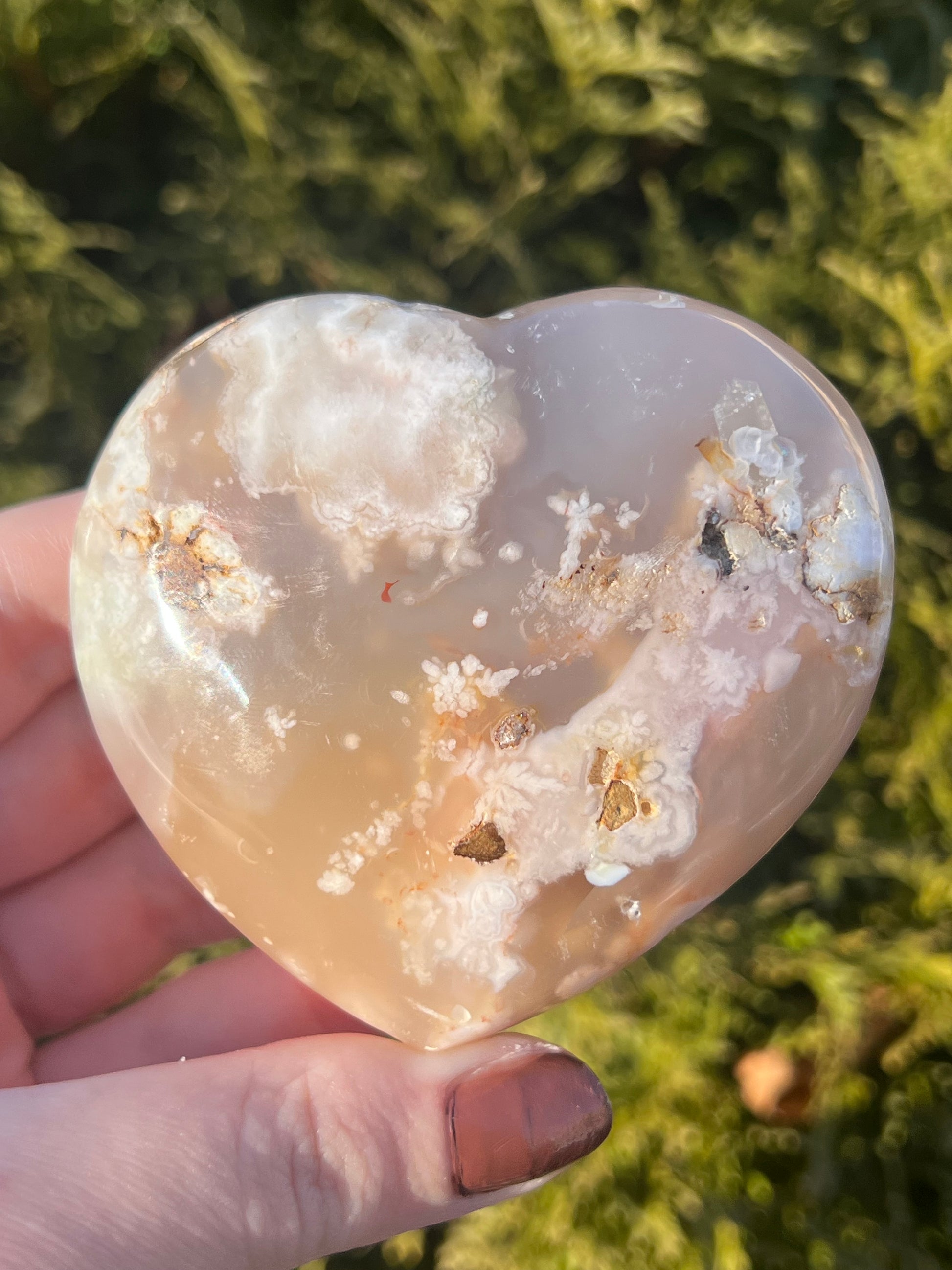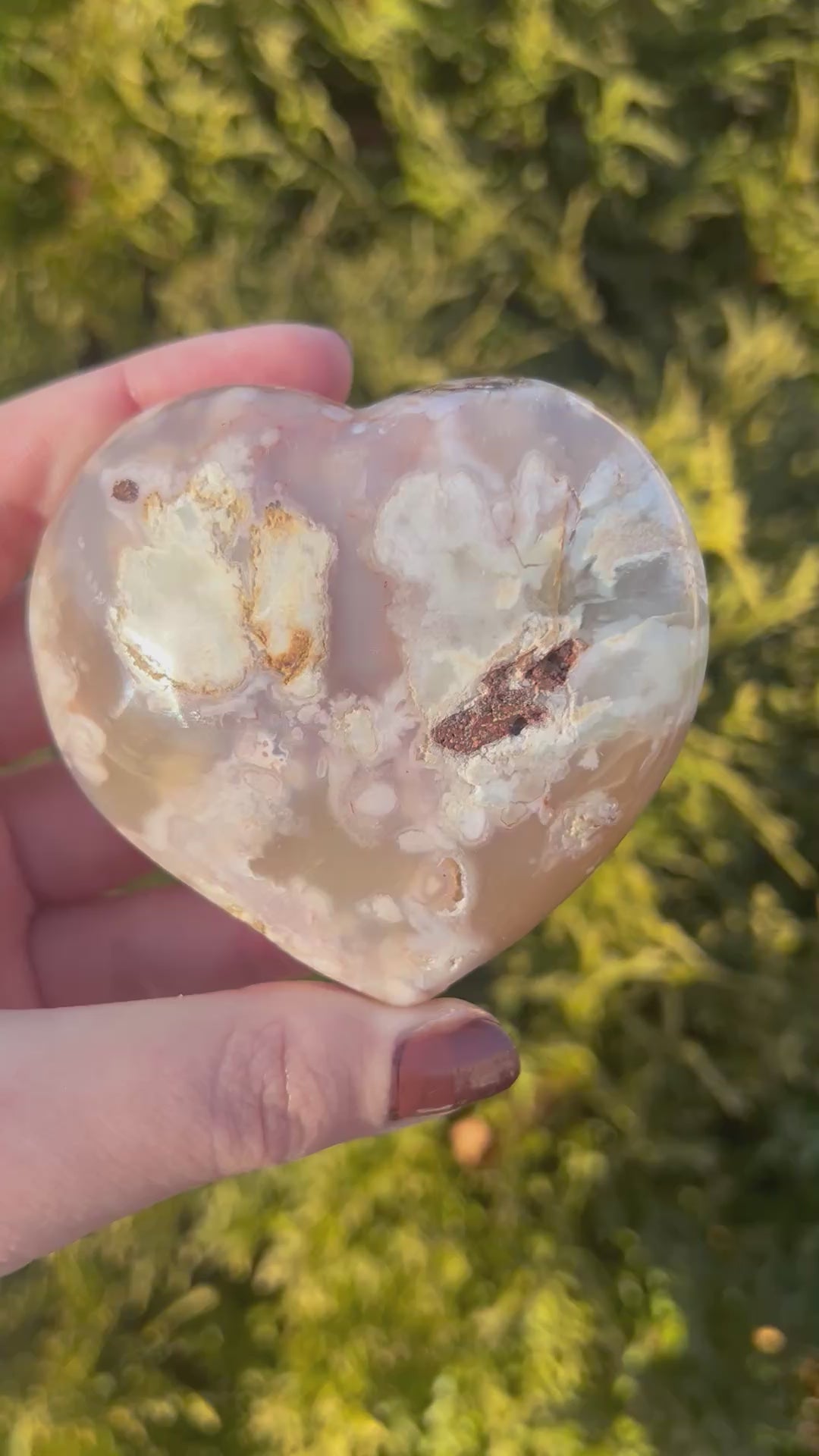 This beautiful flower agate heart features soft pink and cream tones with natural floral patterns that resemble blooming petals. Flower agate is known as a stone of growth, self-discovery, and gentle motivation, helping you nurture your dreams while encouraging patience and emotional balance.