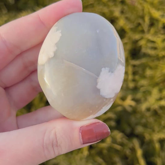 Flower Agate is often associated with growth, self-discovery, and nurturing new beginnings. Its calming presence encourages patience and confidence while supporting you as you move toward your goals. Each palm stone is unique in pattern and color, making every piece a one-of-a-kind reminder to bloom at your own pace.