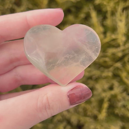 This fluorite heart is a beautiful blend of soft greens, purples, and clear tones, carved into a smooth, comforting heart shape. Naturally occurring color banding gives each piece its own unique look, highlighting fluorite’s calming and visually soothing energy.