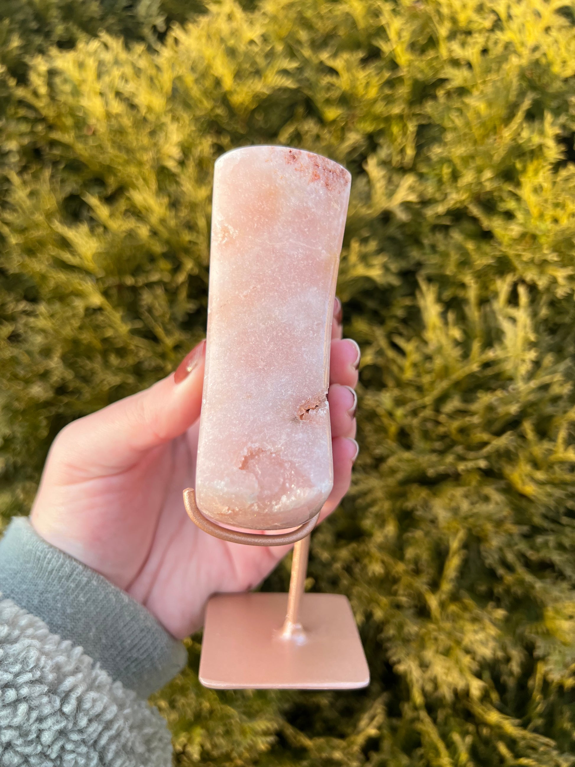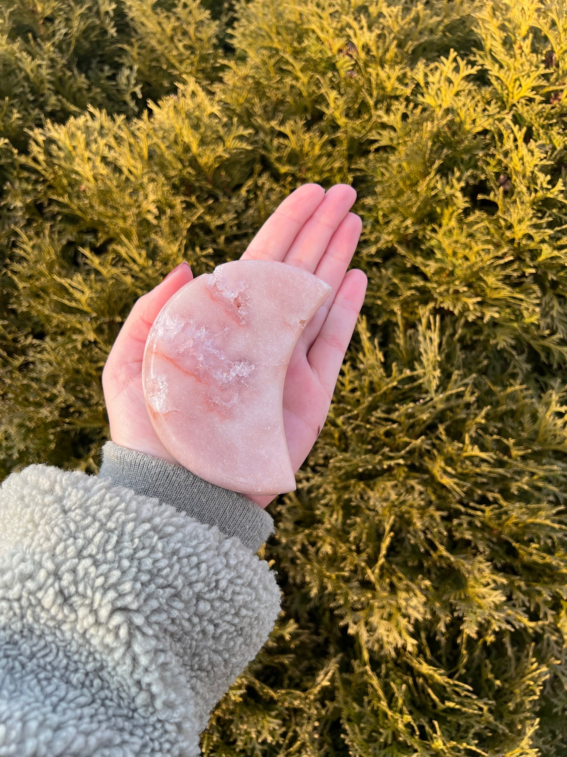 A Pink Amethyst Moon on Stand is a dreamy statement piece that combines gentle energy with celestial beauty.