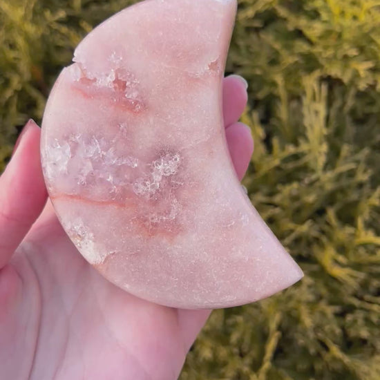 Pink amethyst is often associated with emotional healing, calm, and self-love, while the moon shape symbolizes intuition, cycles, and inner reflection. Each piece is completely unique, with natural color variations and crystal textures that make it truly one of a kind.
