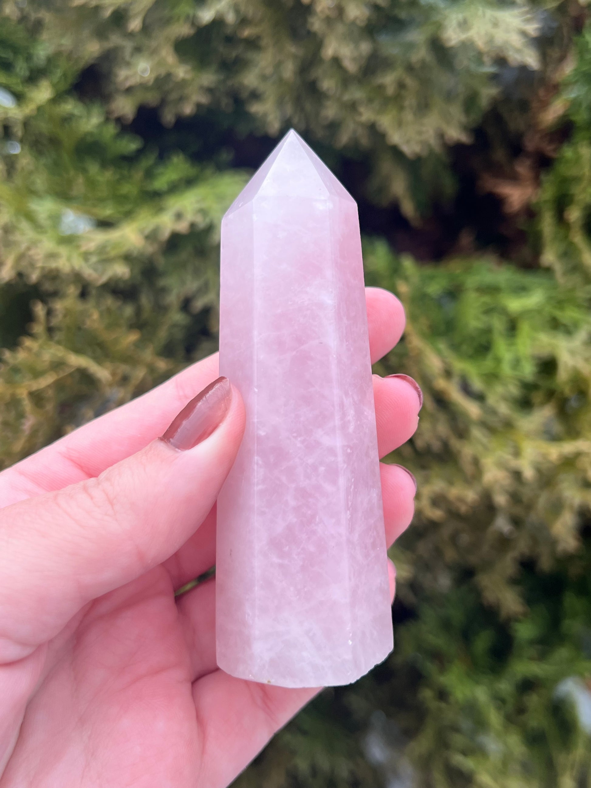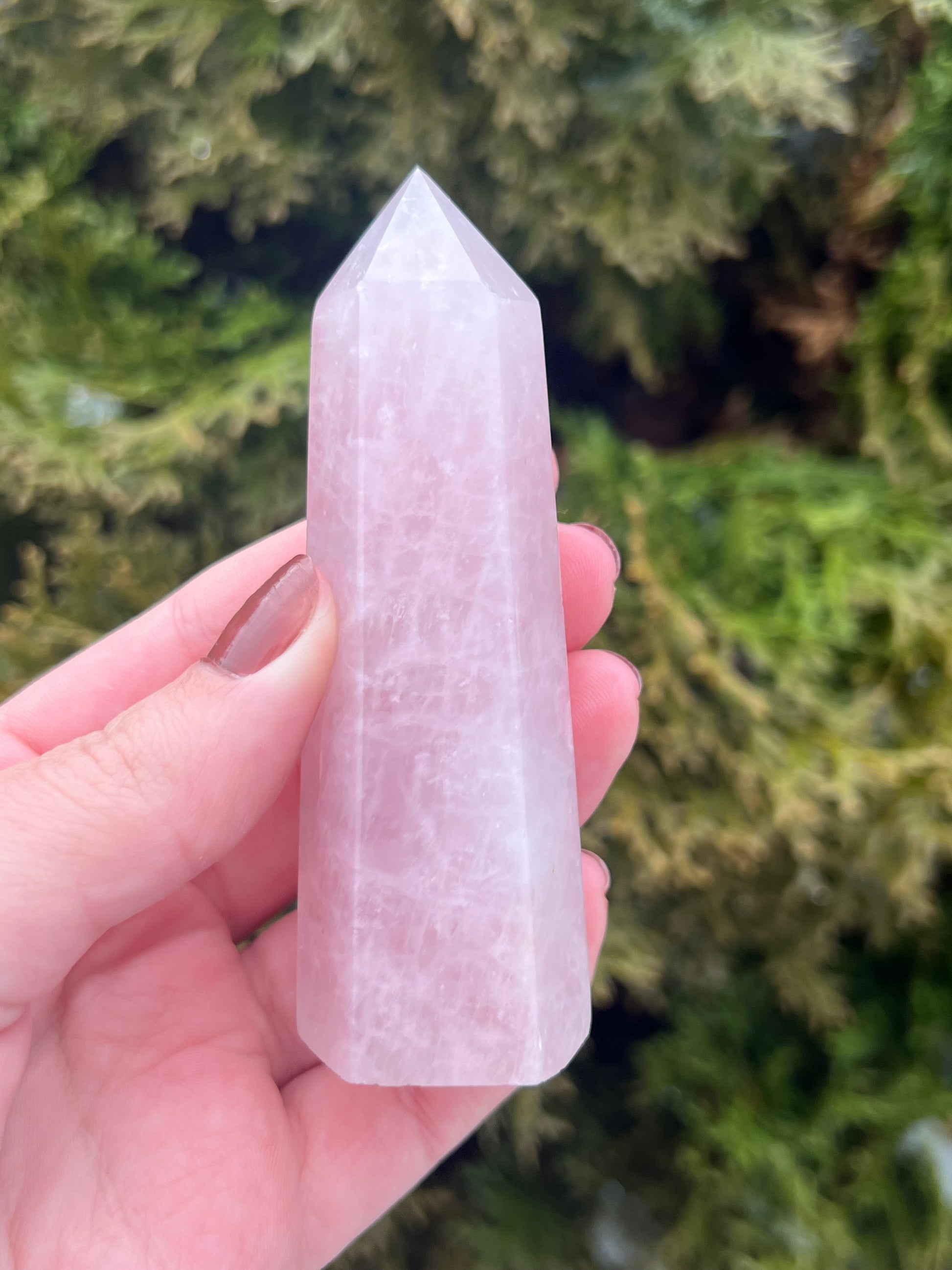 Perfect as a thoughtful gift or a meaningful addition to your crystal collection, this rose quartz point radiates soft, loving energy and timeless beauty.