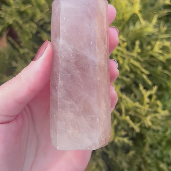 Rose quartz is often associated with calming the heart, easing stress, and promoting kindness and forgiveness. The tower shape helps focus and gently amplify its nurturing energy, making it perfect for meditation, intention setting, or as a peaceful accent in your bedroom, altar, or living space.