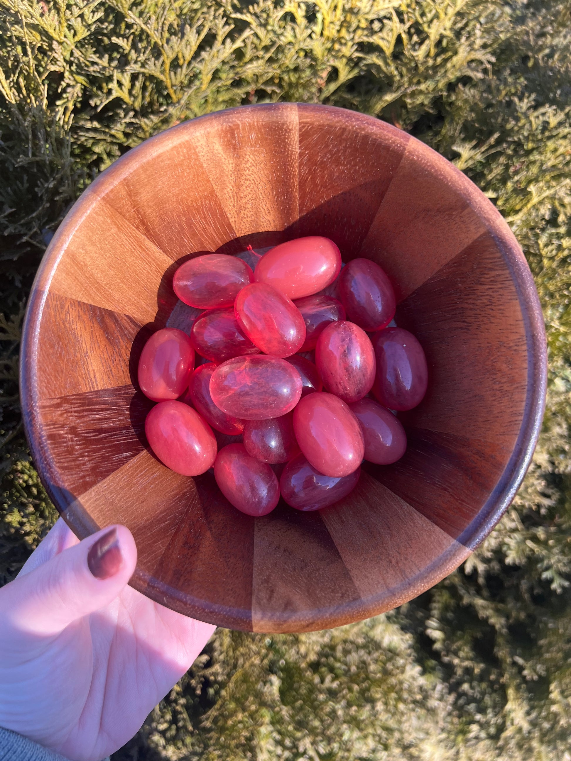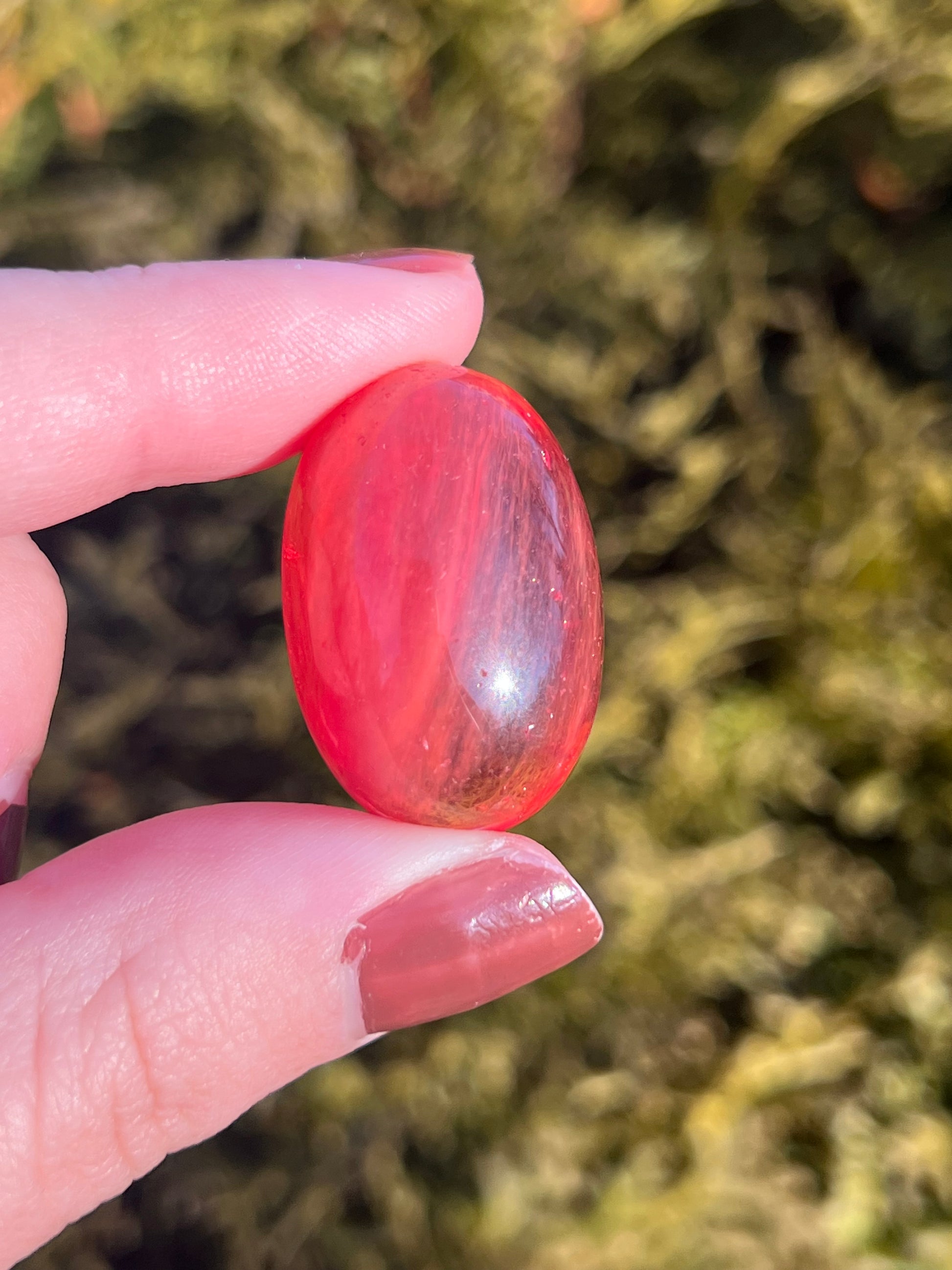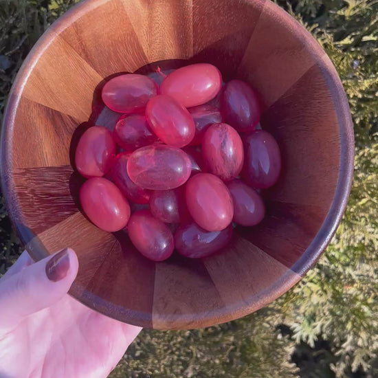 Red Smelting Quartz tumbled stones are striking, glassy pieces created through a man-made process that gives quartz its bold red coloring and smooth, high-shine finish. Their vibrant red tones make them eye-catching and unique, with each stone reflecting light beautifully from every angle.
