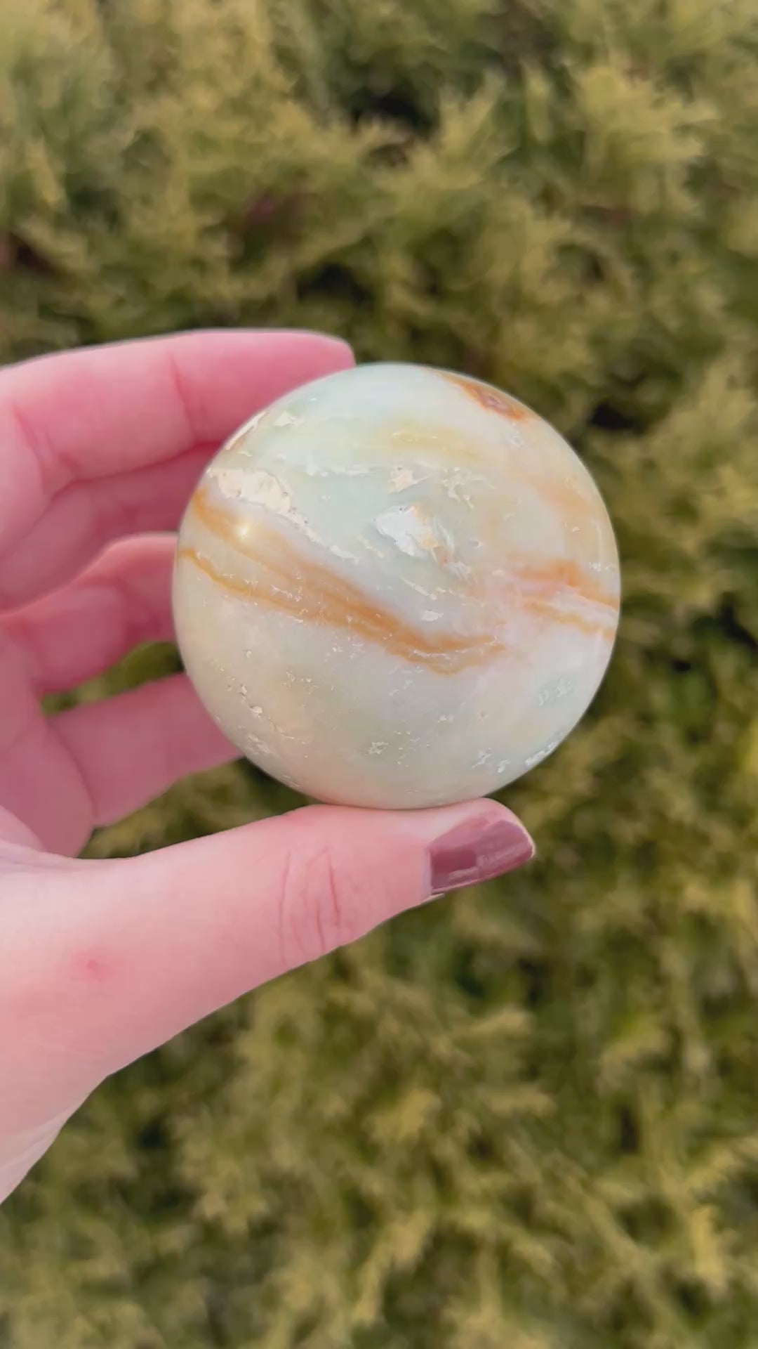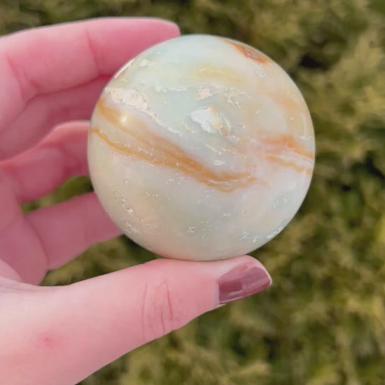 Carved into a smooth sphere, this piece symbolizes wholeness and balance, allowing energy to flow evenly in all directions. It’s perfect for meditation, calming anxious thoughts, or creating a peaceful atmosphere in your space. The dreamy, beachy colors make it both a powerful soothing stone and a stunning decorative piece for any crystal collection.
