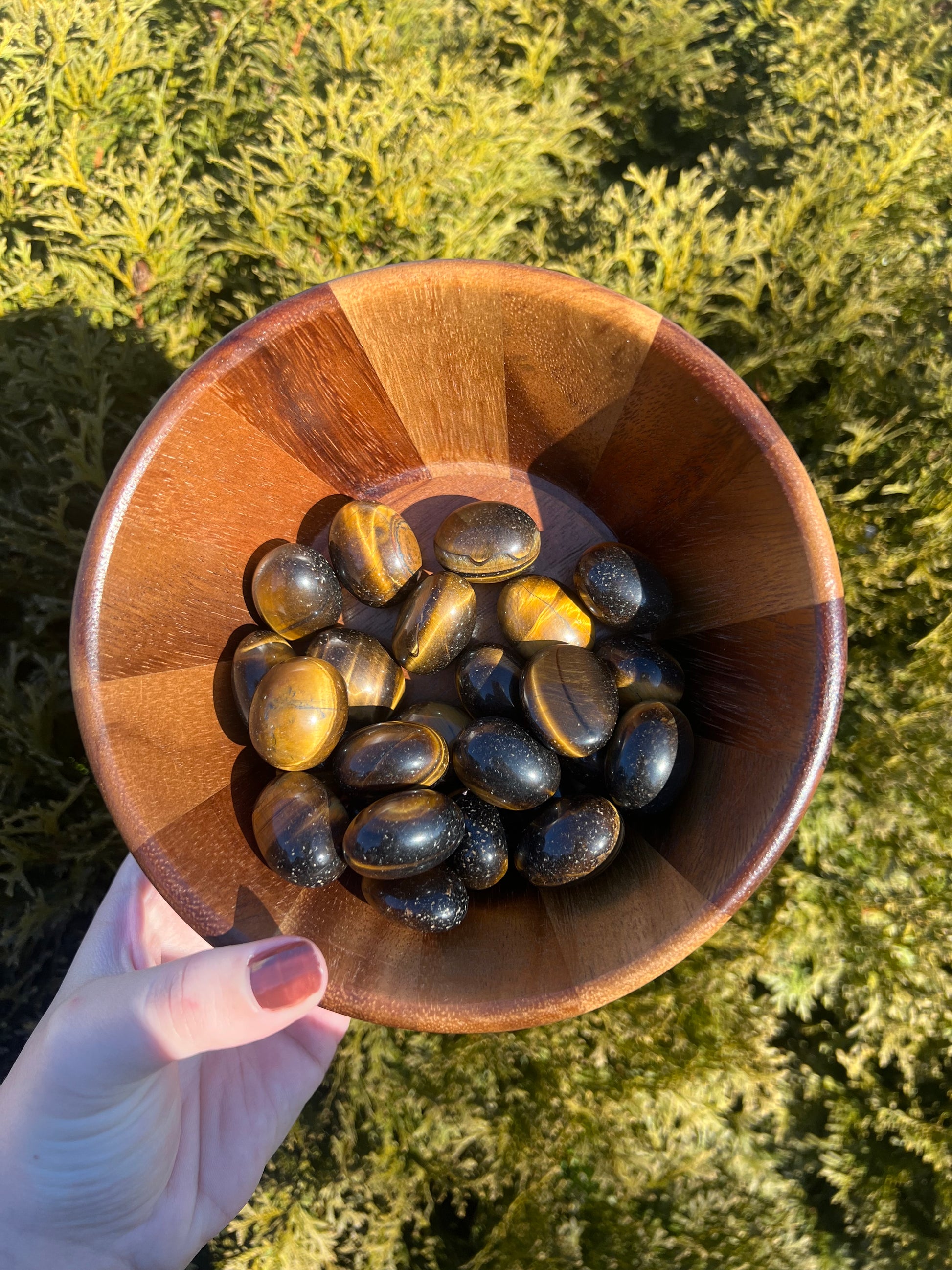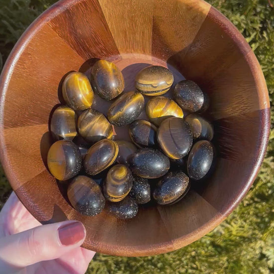 Yellow Tiger’s Eye tumbled stones are smooth, polished pieces known for their golden yellow and warm brown bands with a natural silky shine. When light hits the surface, the stone displays a beautiful chatoyant effect, creating a soft shimmer that makes each piece especially eye-catching.